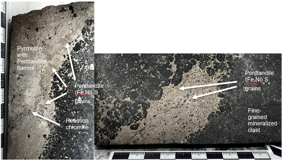 Figure 3 - Net-textured to semi-massive mineralization in core from Iron Mountain drill hole IM2025-01 displaying sulphide liquid percolation textures at around 417m depth.