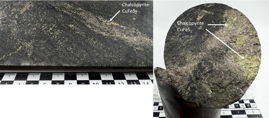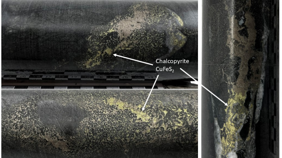 Figure 2 - Core from Iron Mountain drill hole IM2025-01 showing net-textured to semi-massive mineralization at around 400m depth.