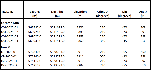 Table 1 - Highlight 2025 drill results from the Chrome Mountain and Iron Mountain HGR deposit area