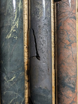 Hole MEPS-25-19 was drilled toward the northwest part of the MEPS Discovery area and intersected a broad zone of continuous copper mineralization with multiple higher-grade intervals (see Table 1). A high-grade interval at approximately 120m depth was followed by a second interval at 261m depth, representing an approximately 35m step-out northwest of the high-grade bornite zone intersected in hole MEPS-25-02. The hole confirms strong continuity of mineralization toward the northwest while demonstrating the presence of multiple higher-grade zones within the overall mineralized zone.