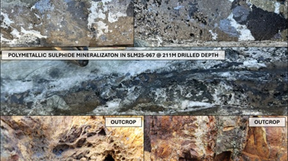 SLM25-067 - 6.00m of 14.1g/t Ag, 0.7% Pb, 0.6% Zn and 0.018g/t Au including 2.75m of 26.3g/t Ag, 1.3% Pb, 1.2% Zn and 0.020g/t Au and 1.10m of 62g/t Ag, 3.1% Pb, 2.9% Zn, 0.14% Cu and 0.025g/t Au from 204.00m depth.