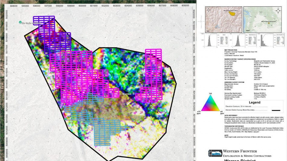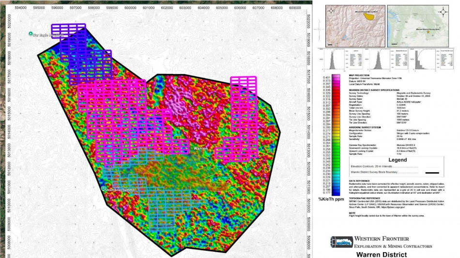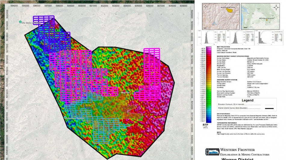 "This is an incredibly successful magnetic survey. It has significantly advanced our understanding of the structural framework controlling mineralization in the Warren District," said Steve Dobson, Project Geologist. "The data has revealed a well-developed network of structural corridors and intersections characteristic of productive mineral systems. With follow-up induced polarization surveys planned for this summer, we expect to further refine these targets and continue evaluating the broader district-scale mineral system potential."