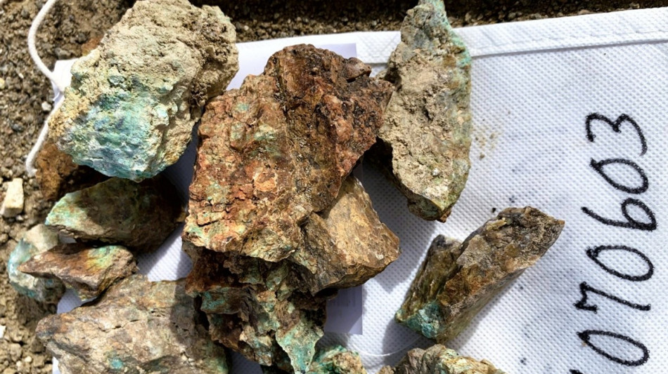 Multiple samples contain the classic blue and green colours of secondary copper, see Figure 7. Copper, silver and other multi-element results are pending for all samples.