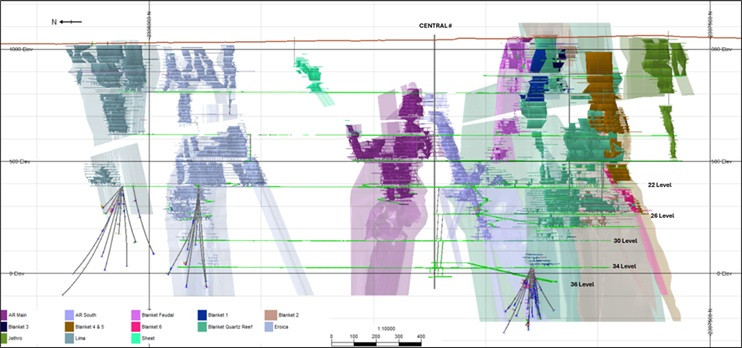Deep drilling at Lima has shown the Lima orebodies extend to at least the 34-level horizon. The Lima orebody comprises up to 6 individual mineralised zones, not always developed together, and further infill drilling will delineate the spatial orientations of these orebodies.
