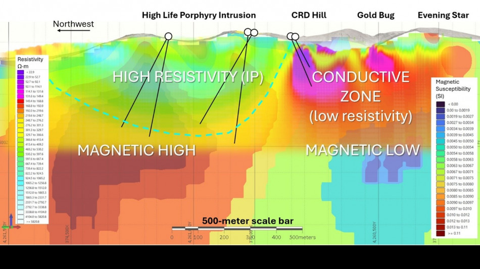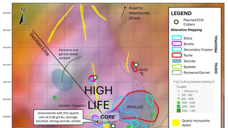 The interpreted copper-gold core of the porphyry system at High Life